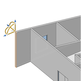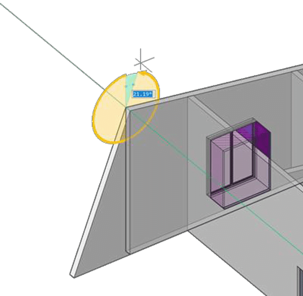 - Kliknij w żółty łuk manipulatora aby móc zmodyfikować i nachylić powierzchnię ściany.