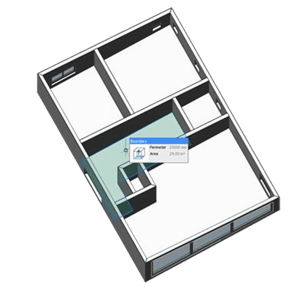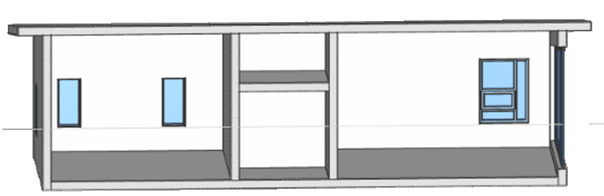 - Przesuń przekrój tak aby cięcie było przed krótką ścianą wewnętrzną z tyłu.