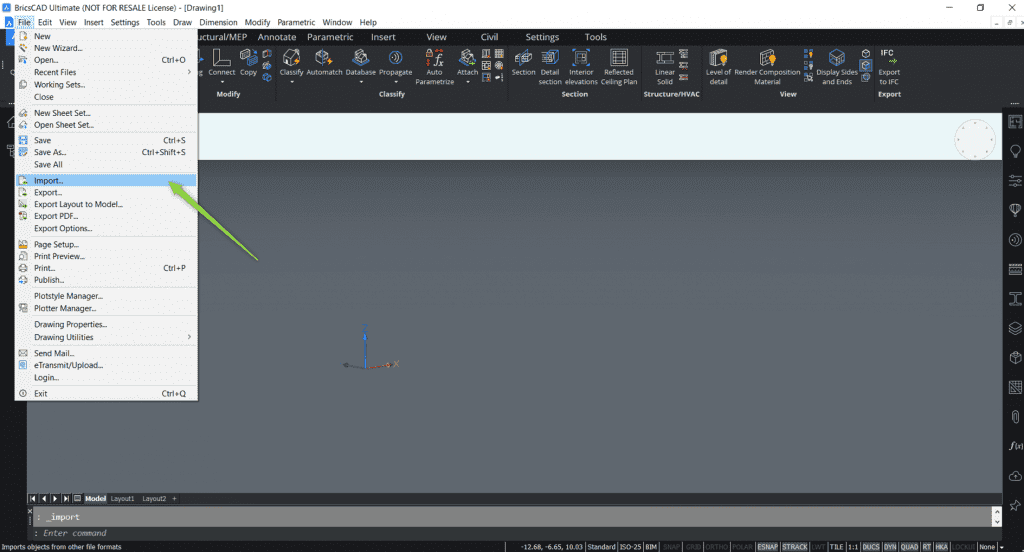 1.Importuję model IFC i zapisuję go jako plik .dwg.